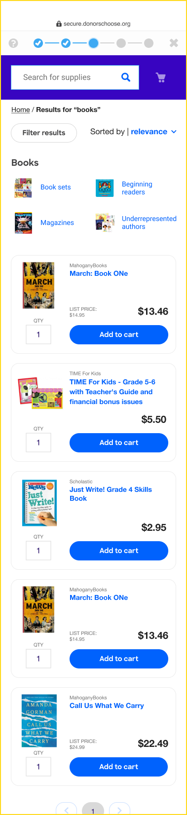 Through extensive research and usability testing, we uncovered key pain points in the shopping experience. Interviews with teachers revealed frustration with inconsistent vendor interfaces, difficulty completing projects on mobile, and the overwhelming time commitment required to shop across multiple vendors. These insights guided our approach to improving the e-commerce experience within DonorsChoose.